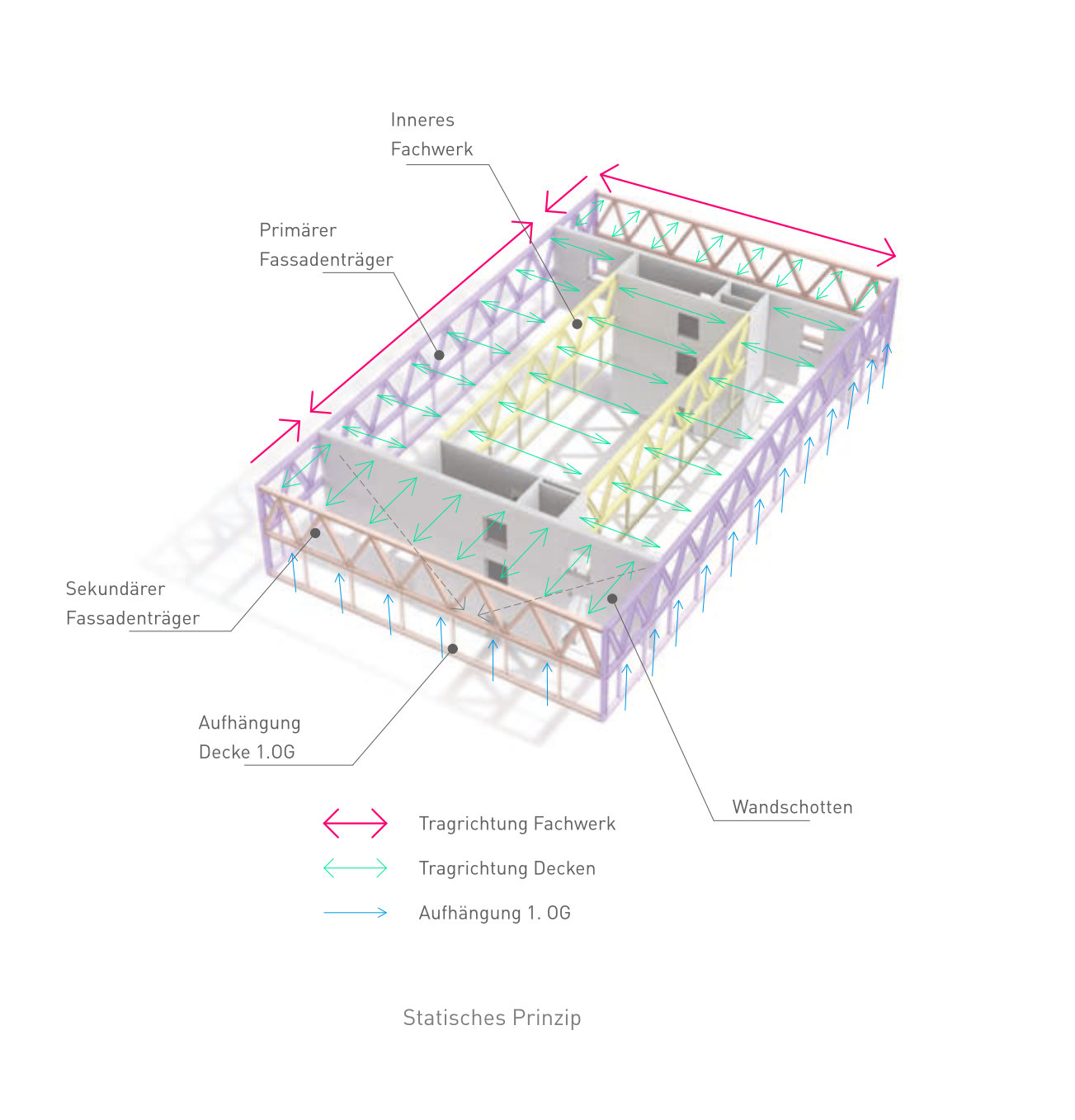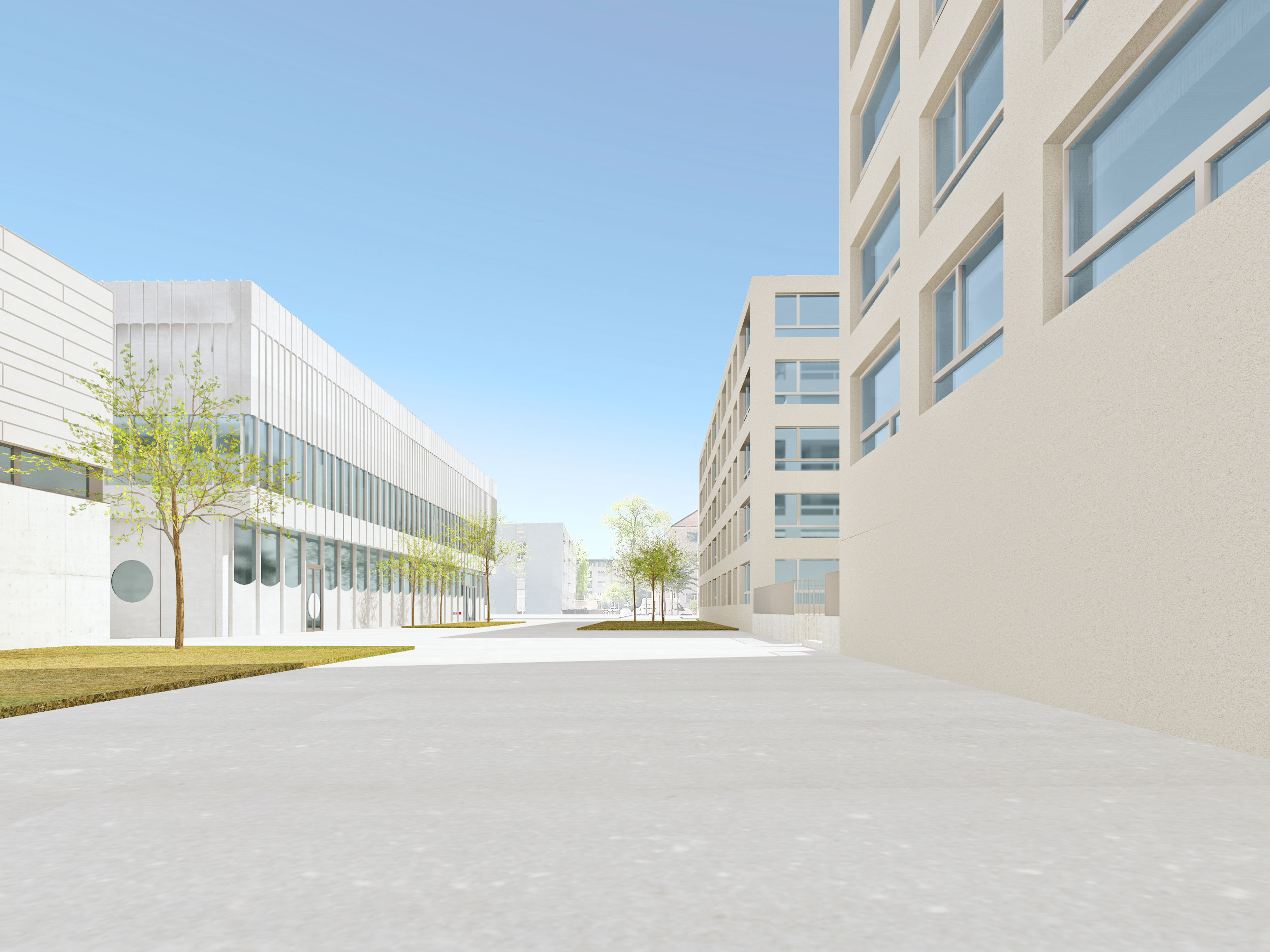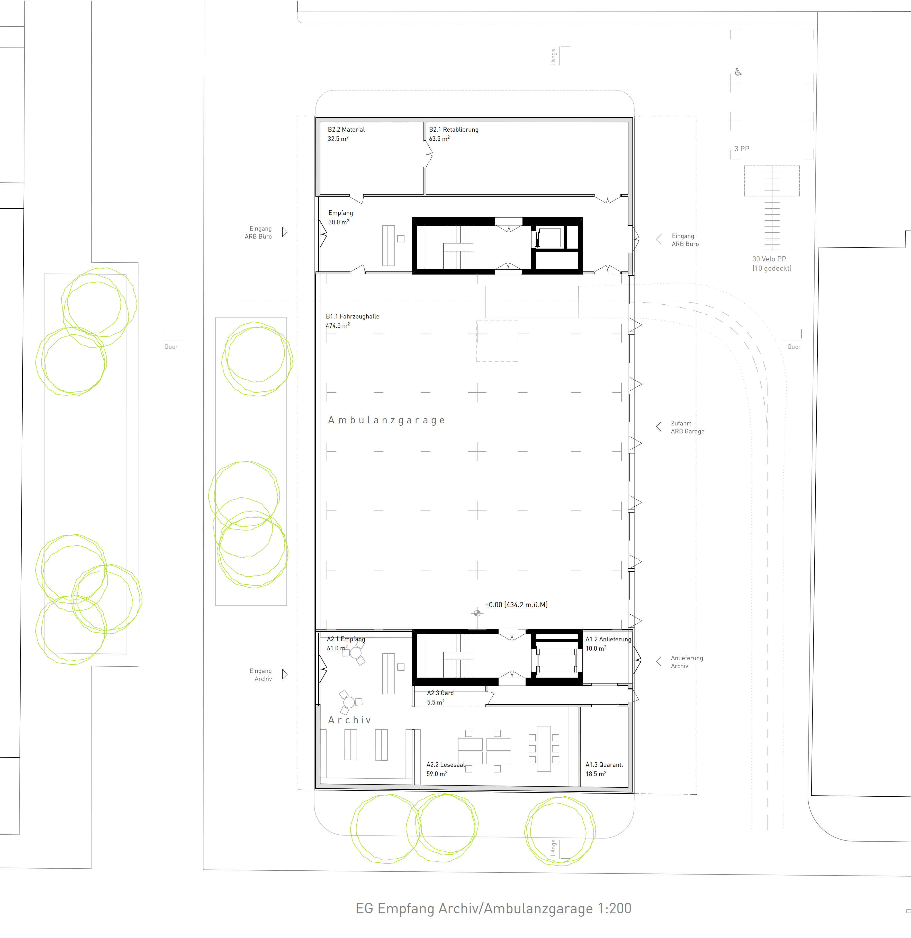 Das komplexe Raumprogram des neuen kombinierten Stadtarchivs und der Ambulanzgarage findet durch geschickte Stapelung in einem kompakten Volumen Platz.